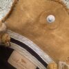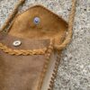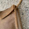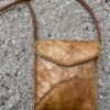 Camel cow hide crossbody bag . Lanced detailing around the borders. Main magnetit closure. Interior is lined with a fun print cotton and have a zipper. Perfect to go out with essentials, phone, keys, lipstick and cash.